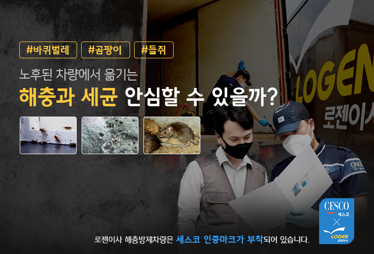 로젠이사 차량은 세스코 통합방제 솔루션을 통해 항상 쾌적하고 안전하게 관리하고 있습니다.
